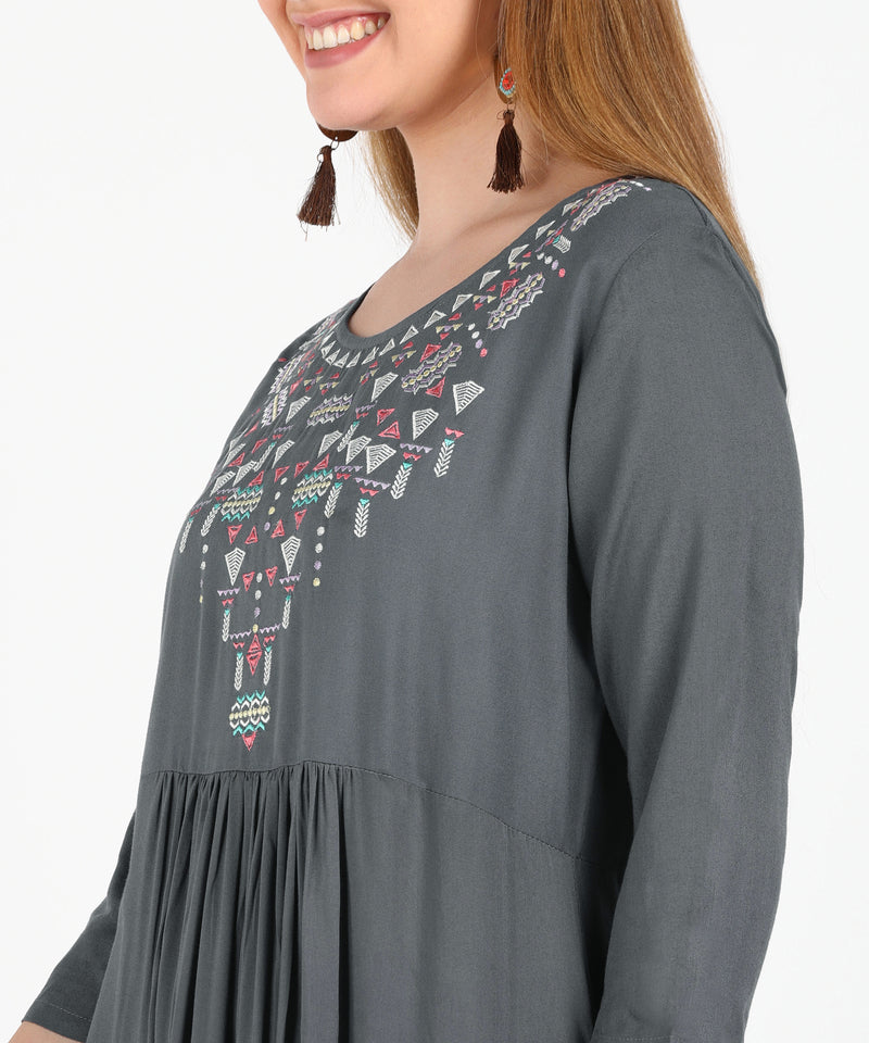 Intricate Embroidery: Features delicate embroidery on the neckline and yoke, adding ethnic charm.