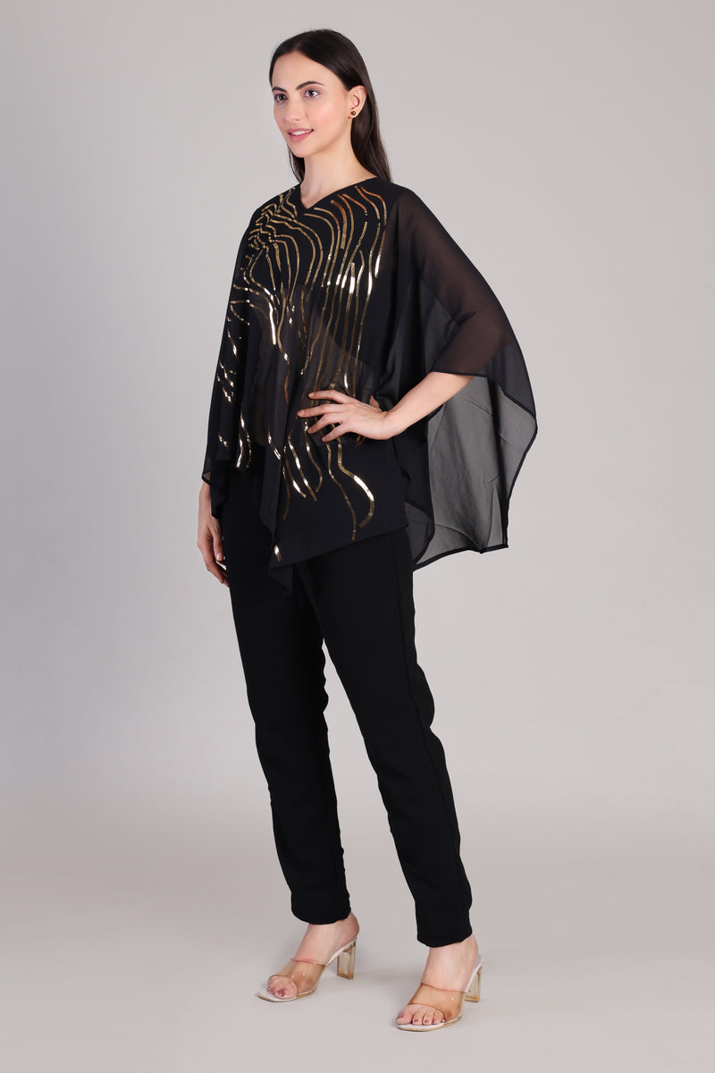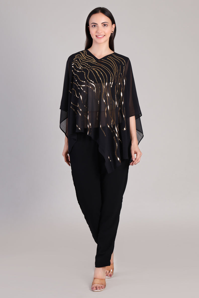 Elevate your festive and partywear wardrobe with this chic Women's Sequins Motifs Embellished Georgette Top Pant Set.