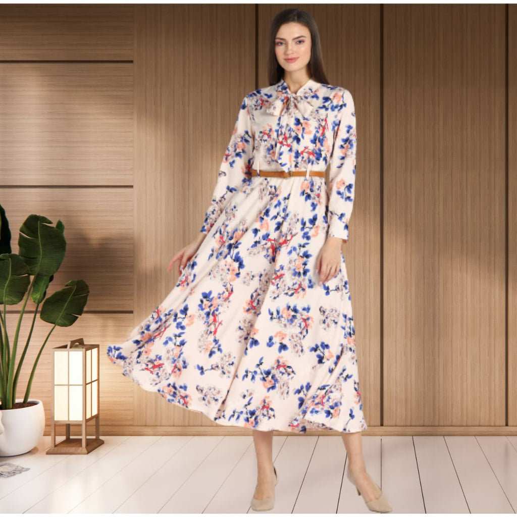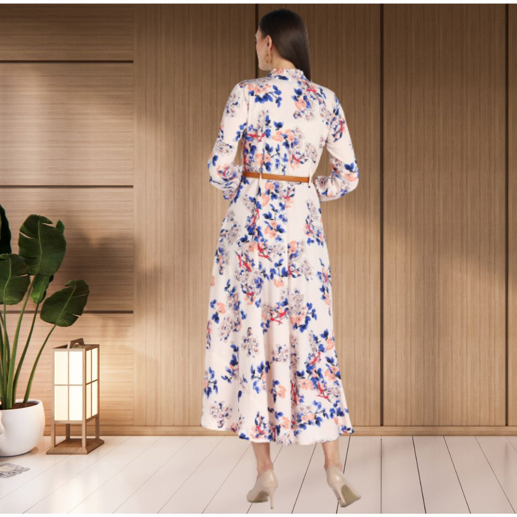 Graceful Floral Print: The dress showcases a beautiful, all-over floral pattern that adds a touch of nature-inspired elegance, perfect for any season.