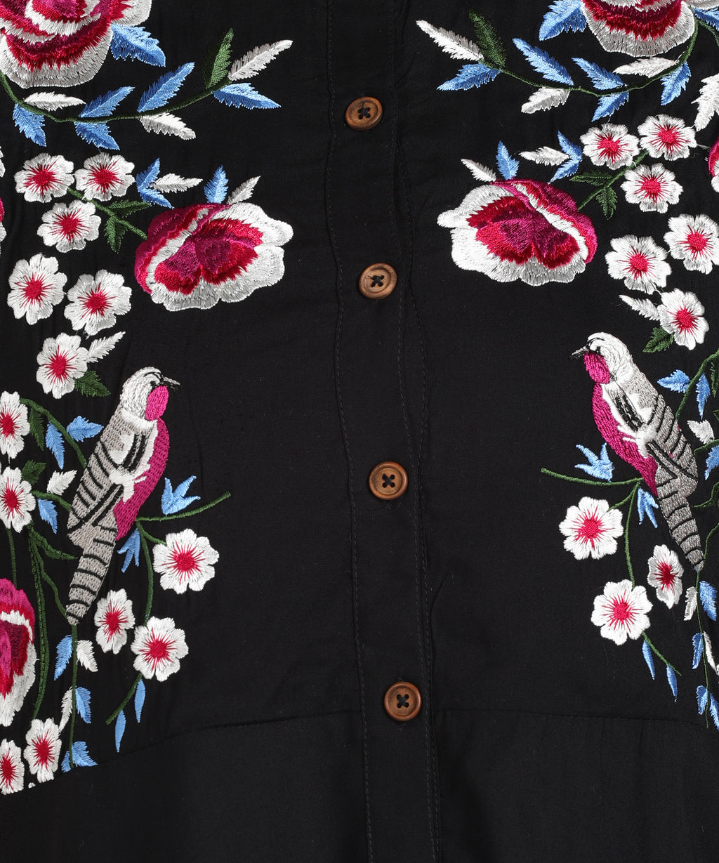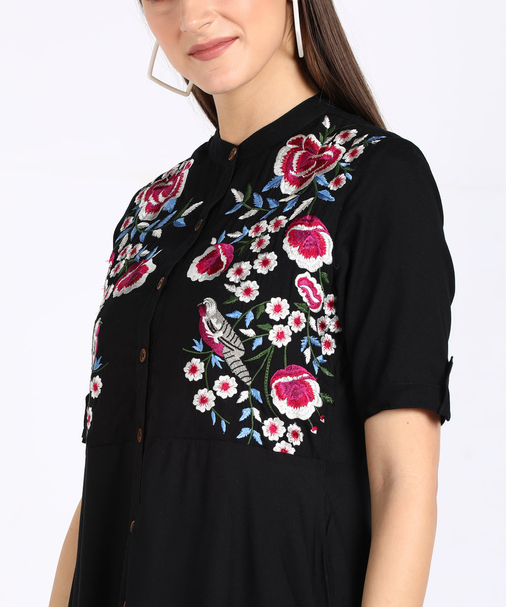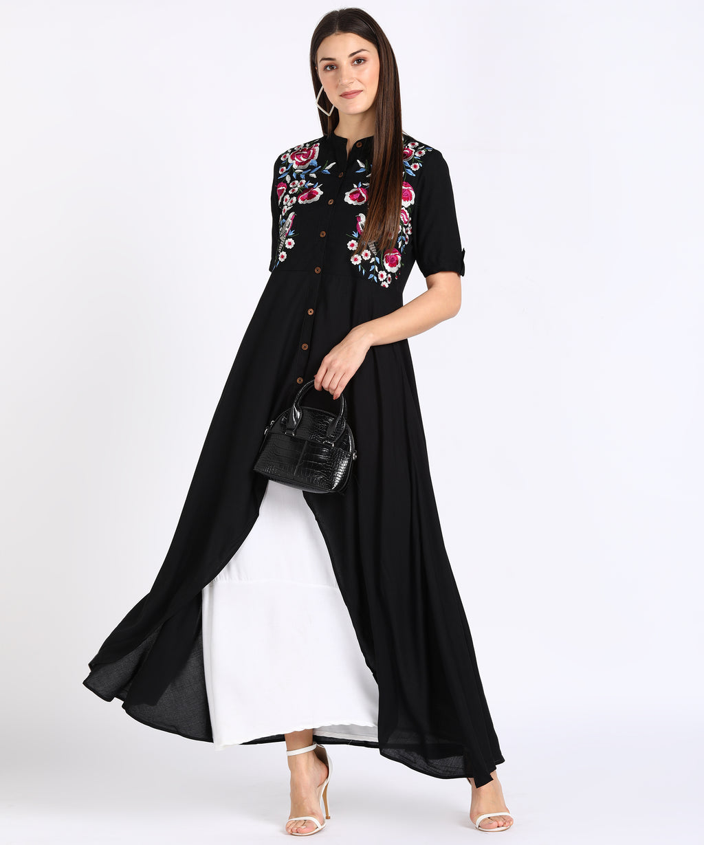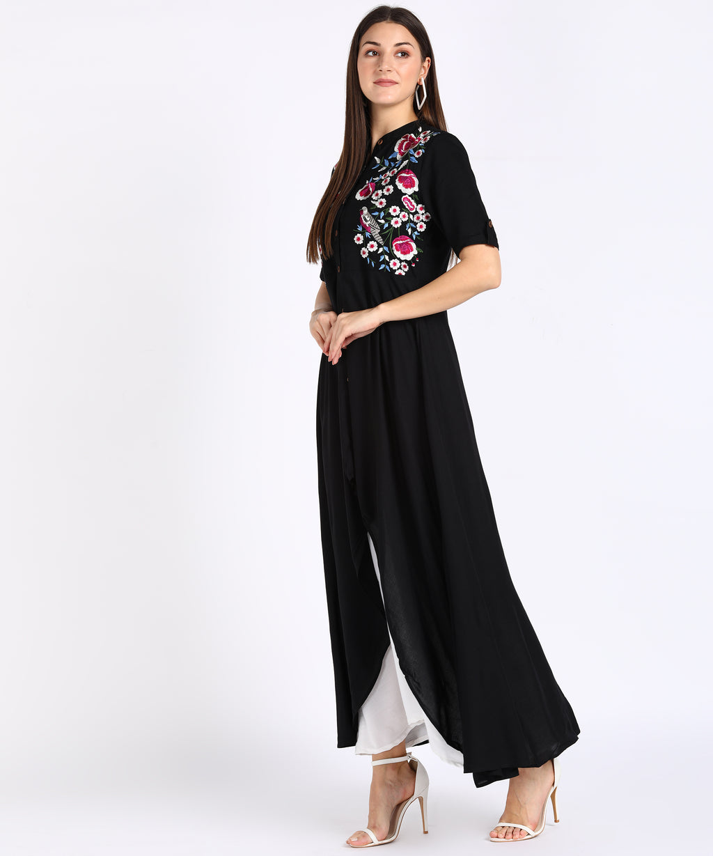 Delicate Floral Embroidery: The kurti is adorned with intricate floral embroidery, adding a layer of elegance and femininity that enhances the overall look of the ensemble.