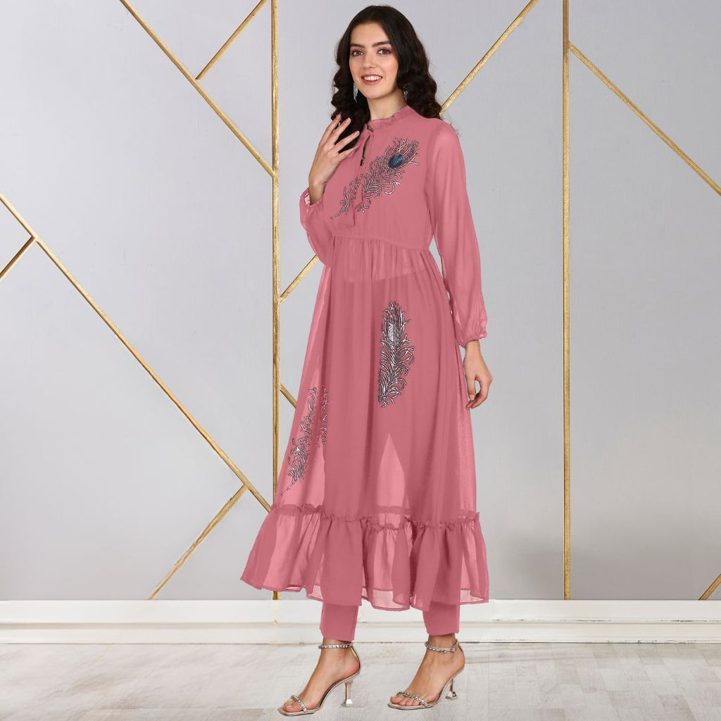 Introducing our Women's Sequins Motifs Embellished Kurti Pant Set, a perfect blend of traditional elegance and contemporary flair designed for the modern woman.