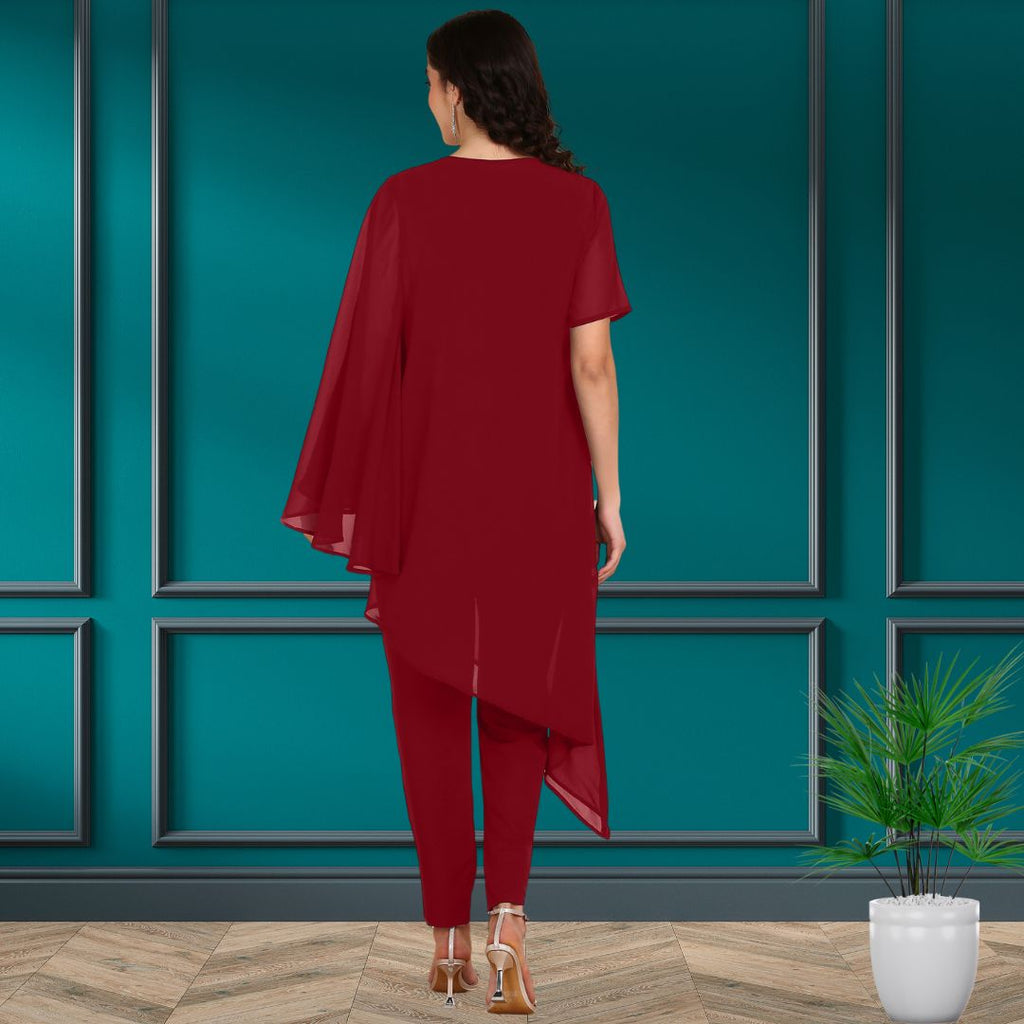Elevate your ethnic wardrobe with this stunning Sequin Embellished Georgette Asymmetric Kurti Pant Set.
