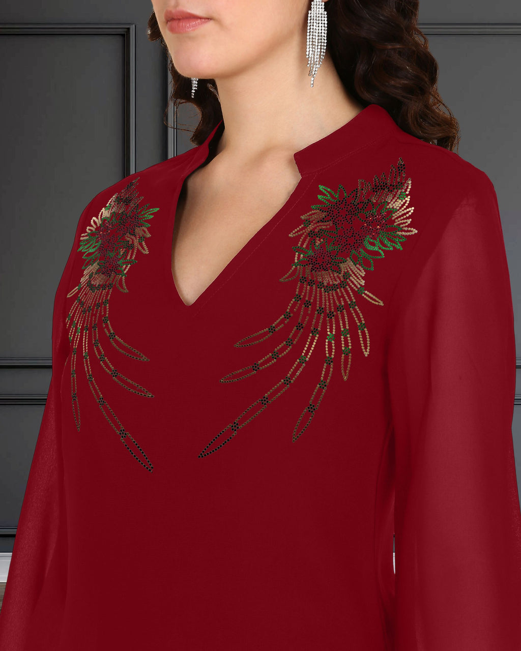 🌟 Embellishment: Hand-embroidered sequin motifs for a subtle sparkle